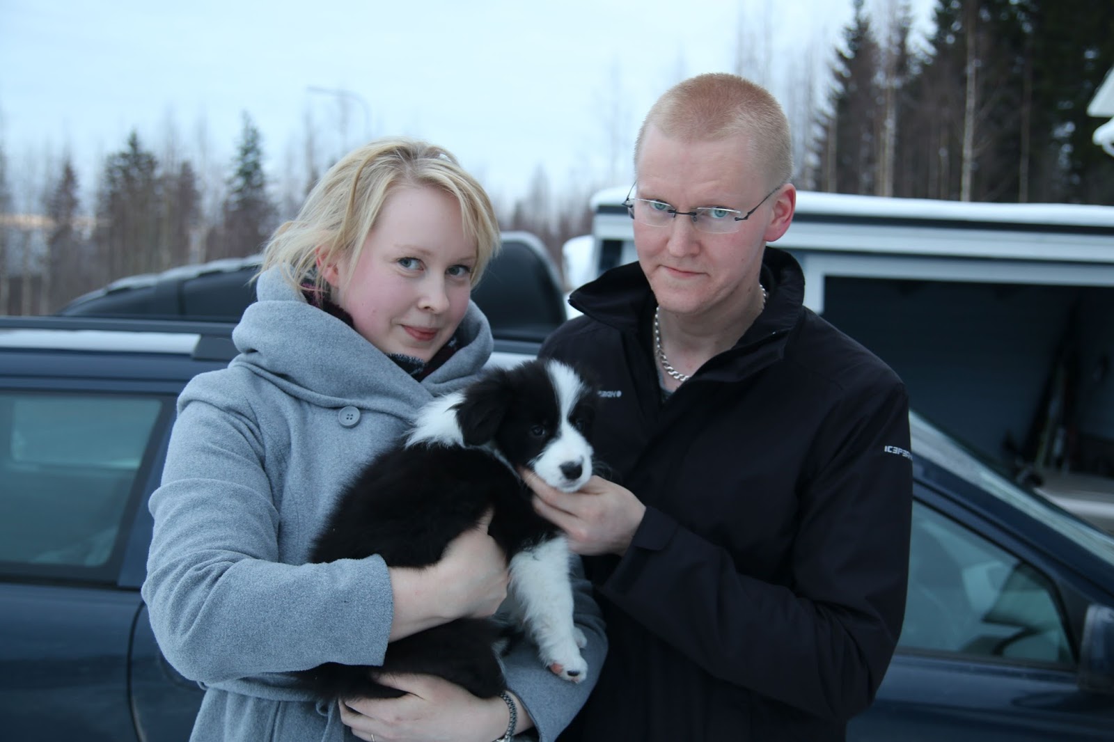 Meillä on edelleen huisketta riittänyt, sillä pennut ovat saaneet ottaa vastaan vielä muutamia rohkeita vieraita. Tänään saimmekin hyvin odotettuja vieraita, kun Elisa tuli testaamaan pennut. Siinä meillä menikin useampi tunti. Nyt pennut nukkuvat reporankoina. On kyllä hienoa, että Elisa pääsikin testaamaan pennut, sillä vaikka nämä ovatkin (myös testaajan mielestä) hyvin tasainen pentue, niin saimme joitain eroja esiin ja tätä kautta myös kotivalinnan vahvistuivat. Kiitos suuresti Ellulle, kun viitsit ajella Oulusta asti tänne Keski-Suomeen pentujeni vuoksi! Testasimme ensin Rubiinin, sitten Safiirin, sitten Esmeraldan, sitten Saipan ja lopuksi Violan.